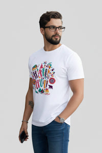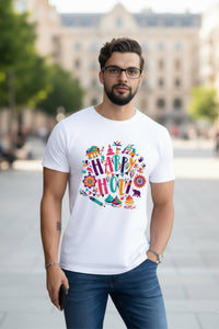 Happy Holi Festival Graphic T-Shirt, Unisex, White Polyester
